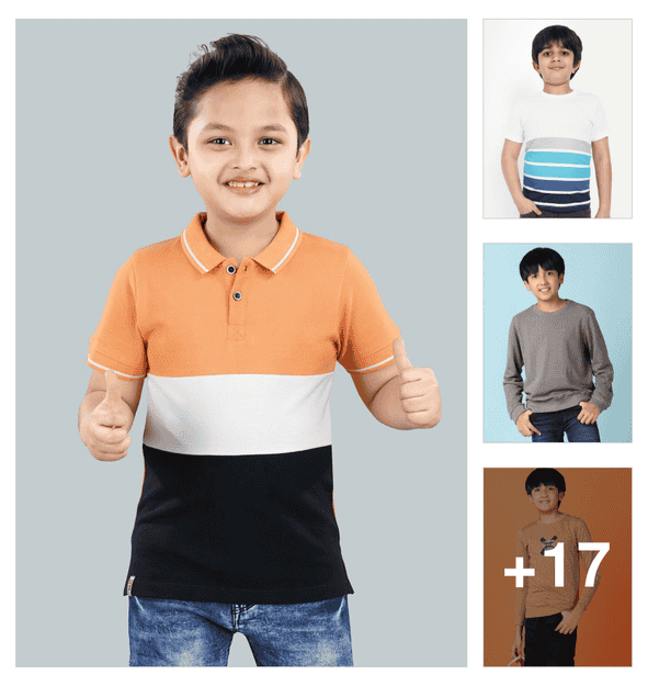 boys polo neck placement printed set of 2 casual t-shirt