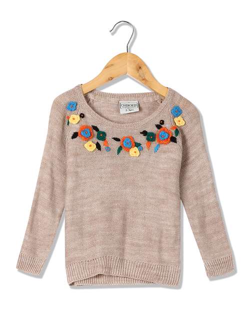 beige embroidered detail cardigan