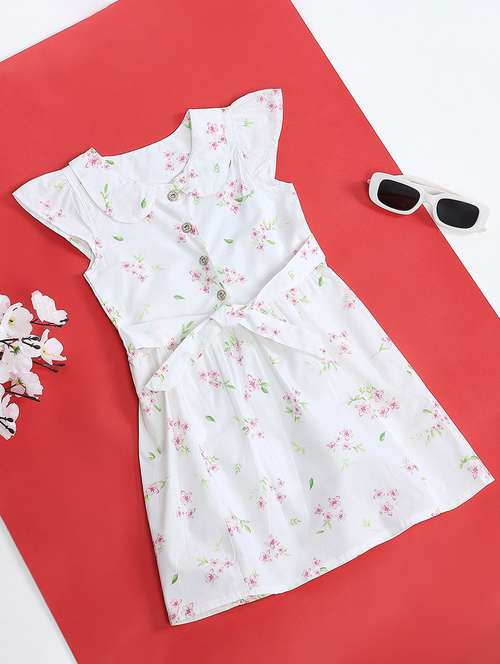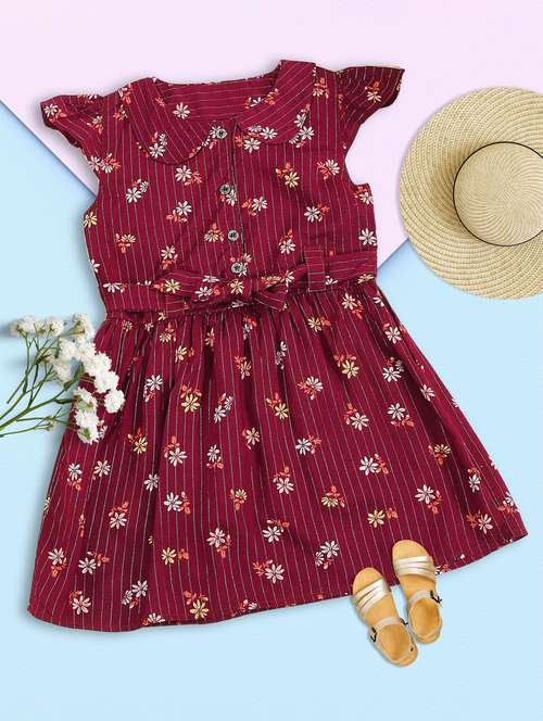 This Cap Sleeves Frock/ Dress Deck up your little nightingale's wardrobe. Tailored to sartorial perfection from premium quality cotton fabric, it assures a soft and soothing touch against the skin. The print makes it a bewitching choice. When styled with a matching hairband, your cutie pie will garner the attention of one and all. Little girls will love this look and feel of this dress.