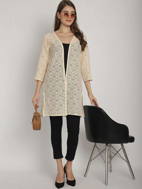 - » beige self design cotton blend shrug