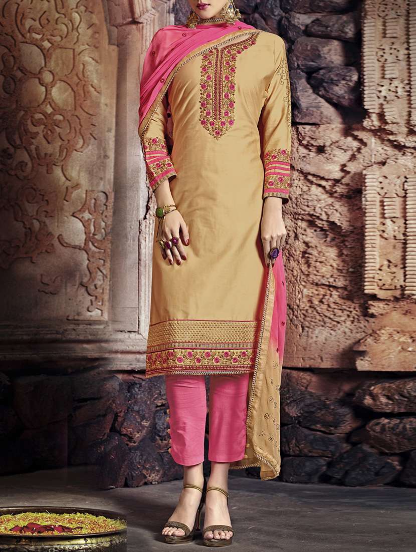 - » beige cotton blend embroidered dress material (unstitched)