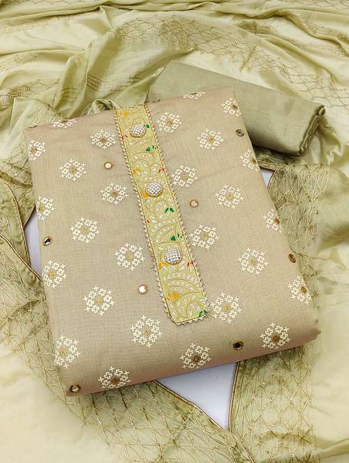 - Look ultra gorgeous in unstitched suits from Manvaa and grab these beautiful suits in beige colour.