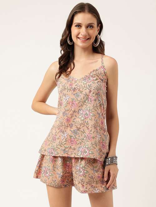 - » beige printed shorts set nightwear