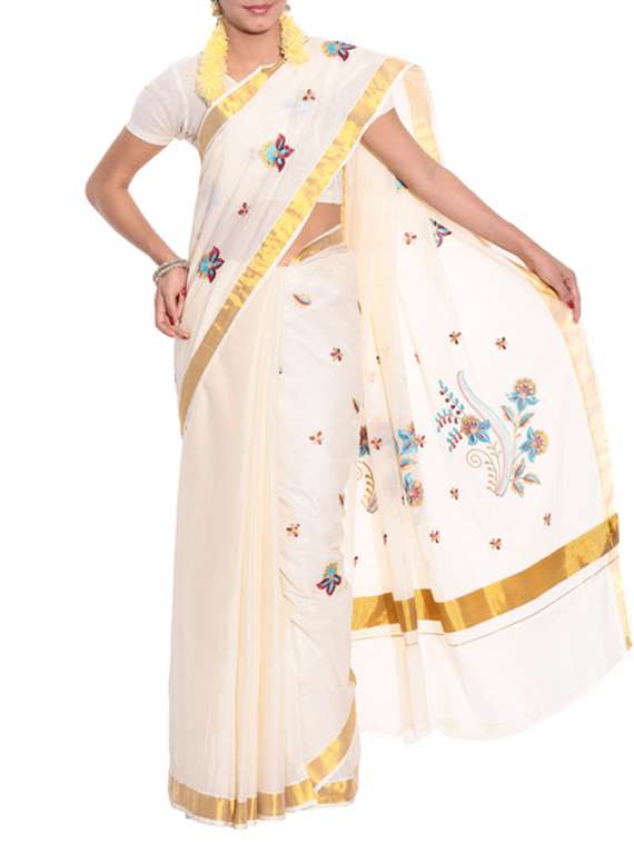 - » beige cotton kasavu saree with blouse