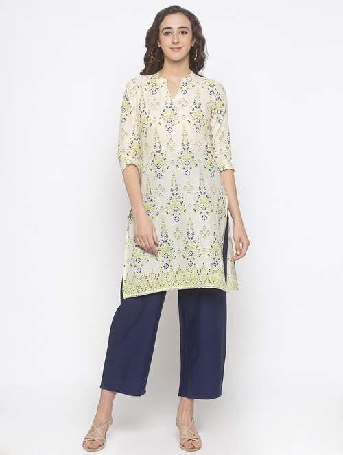 - Grab this beautiful kurta made up of cotton fabric featuring mandarin collar neck designs.