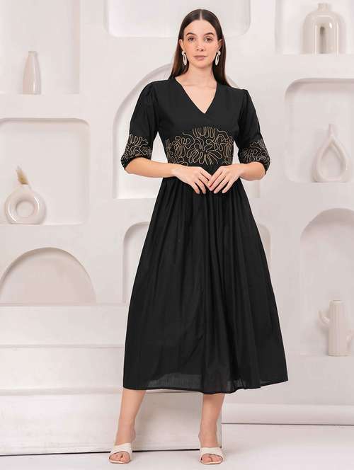 - Dress up in a soothing pattern and don this dress made of cotton material.