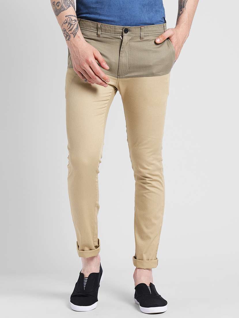 beige color block chinos