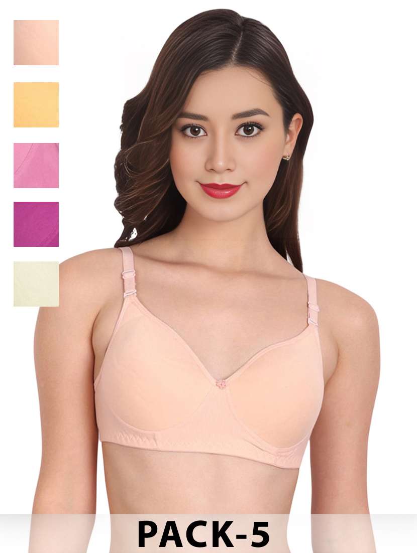 Liigne Women Everyday Non Padded Bra (Pack Of 5) - Made of Pure Cotton Full Coverage Non Wired Pushup Soft Cup for T-Shirt Saree Dress Sports Garment for Daily Use Everyday
