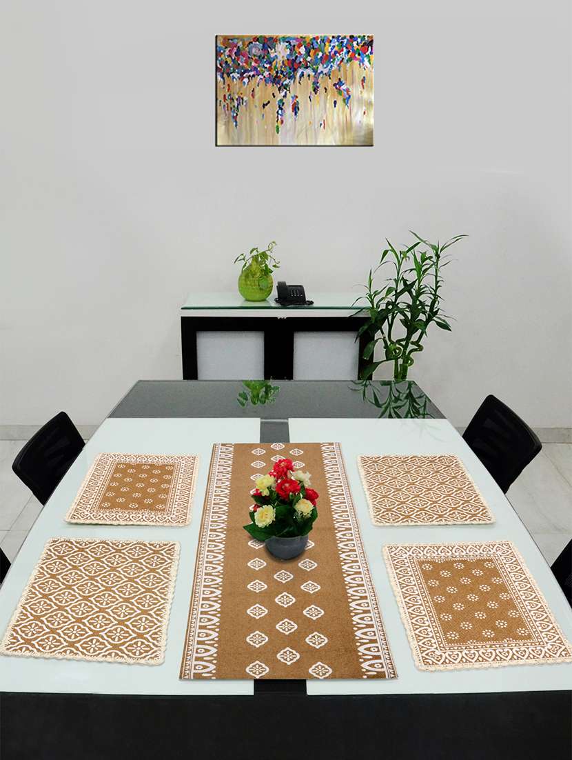 - » saral home cotton dining table placemats, 4 mat -33x45cm, 1 runner 33x120 cm (set of 5)