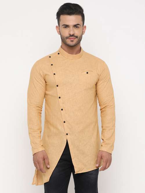 SHOWOFF Men's Cotton Full Sleeve Slim Fit Solid Beige Kurtha