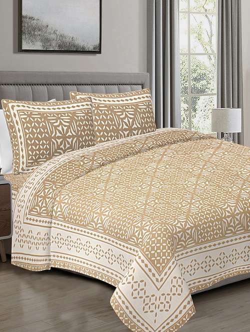 texstylers pure cotton 90x108 inches jaipuri print double bedsheet with 2 pillow cover