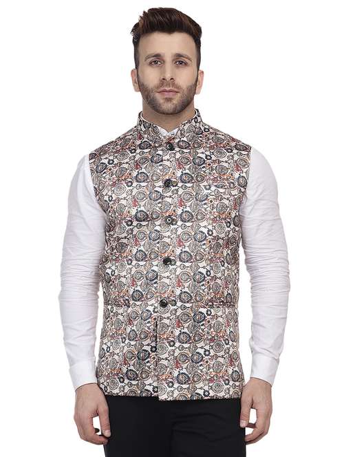 beige printed nehru jacket