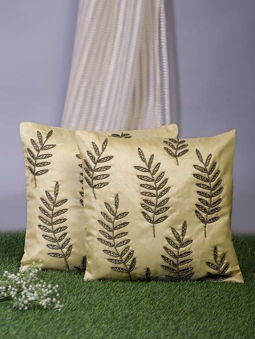 alina decor beige embroidered set of 2 cushion covers
