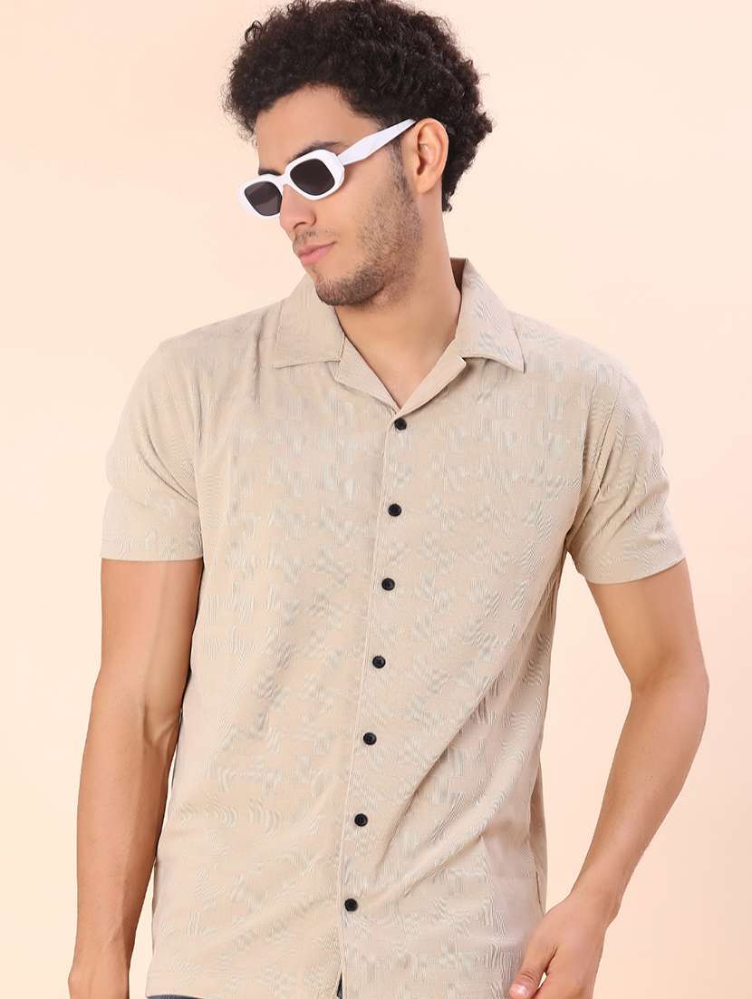 - » men self design short sleeve regular fit casual shirt
