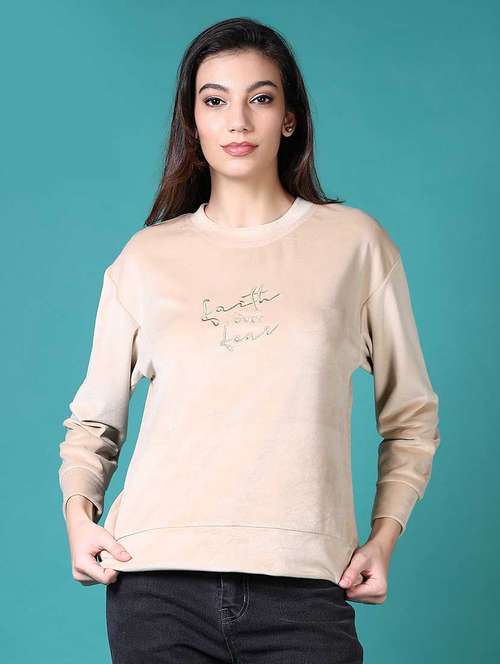 - Recreate your winter style with the all new frisky design options of sweatshirts available in beige shades and hues to brighten up the chilly days.