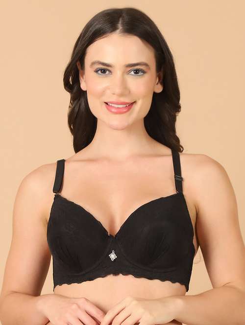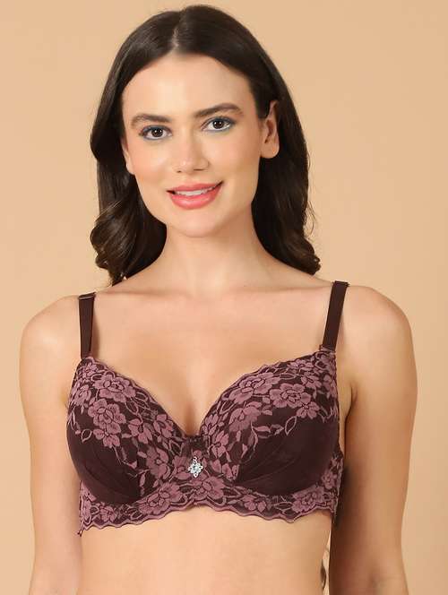 PrettyCat bridal bra featuring lacy cups and a powernet body. The bra includes lightly padded cups to ensure modesty protection while maintaining a comfortable feel. The cups are underwired, providing extra support and comfortable experience, and they offer full coverage to prevent any spillage from the top or sides, Detachable straps to style the bra in multiway ways, Cute stone at the centre for embellishment, triple hook & eye enclosures in smaller/bigger cups.