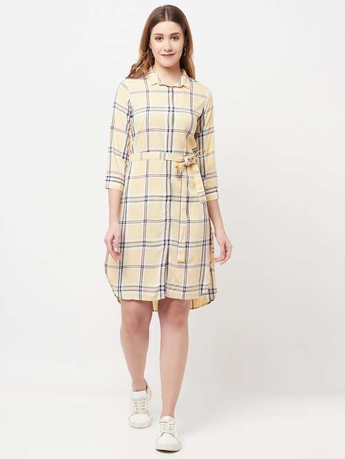tie front checkered shirt dress