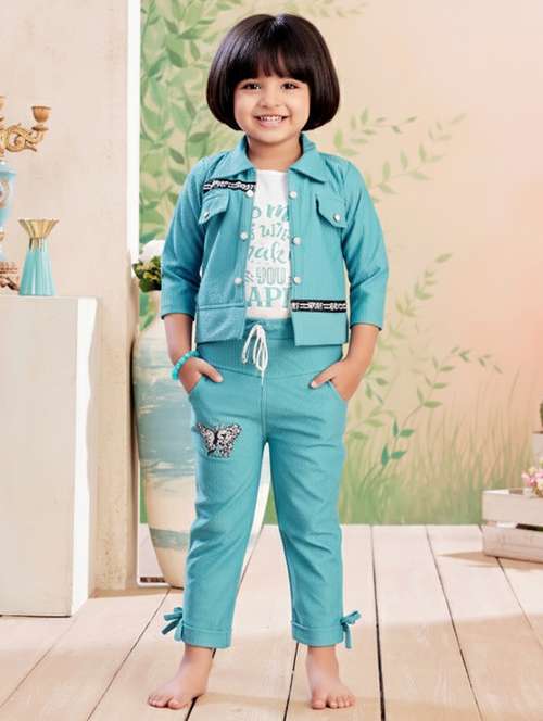 - » girls solid top & trouser co-ord set