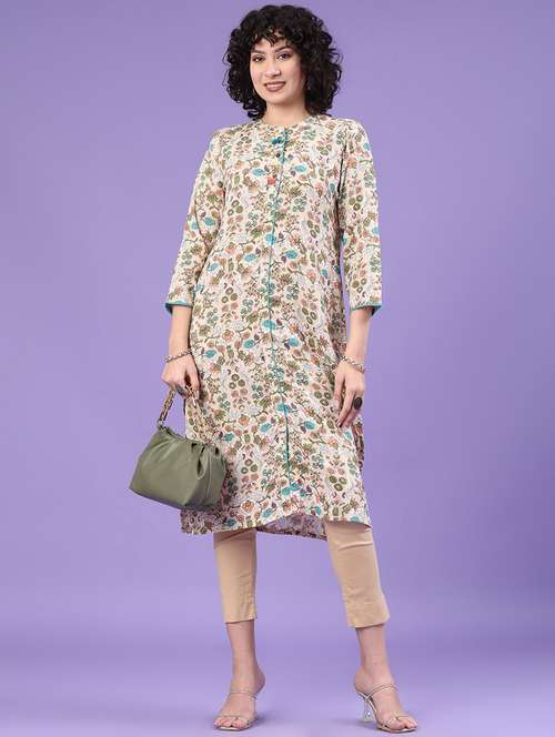 - » women floral printed three quarter sleeve a-line kurta