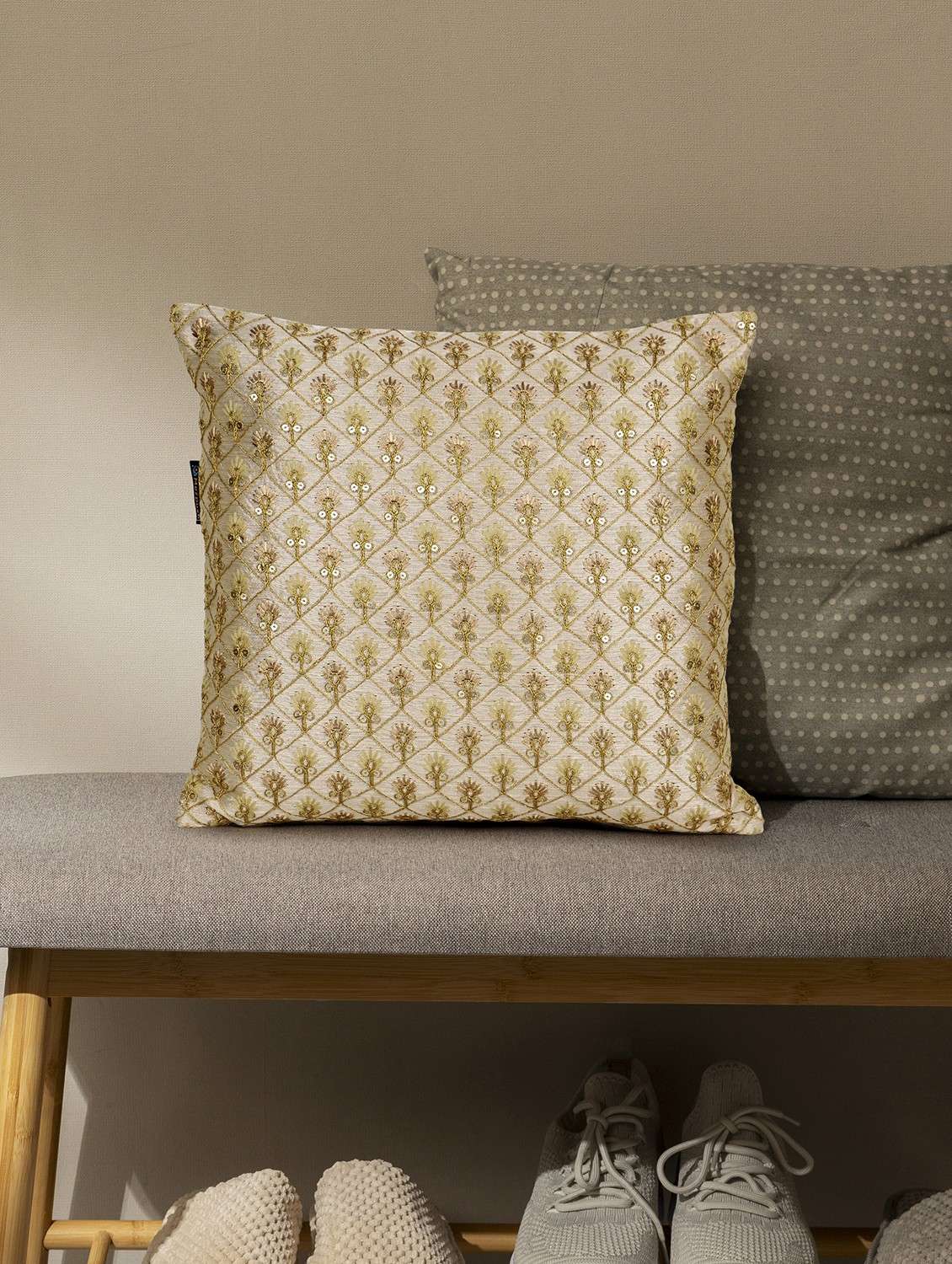 - » mezposh beige & gold embroidered faux silk cushion cover (16"x16")