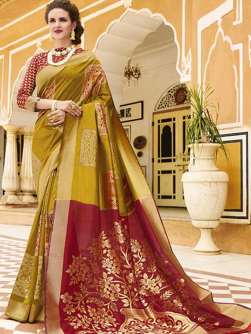floral woven saree with blouse