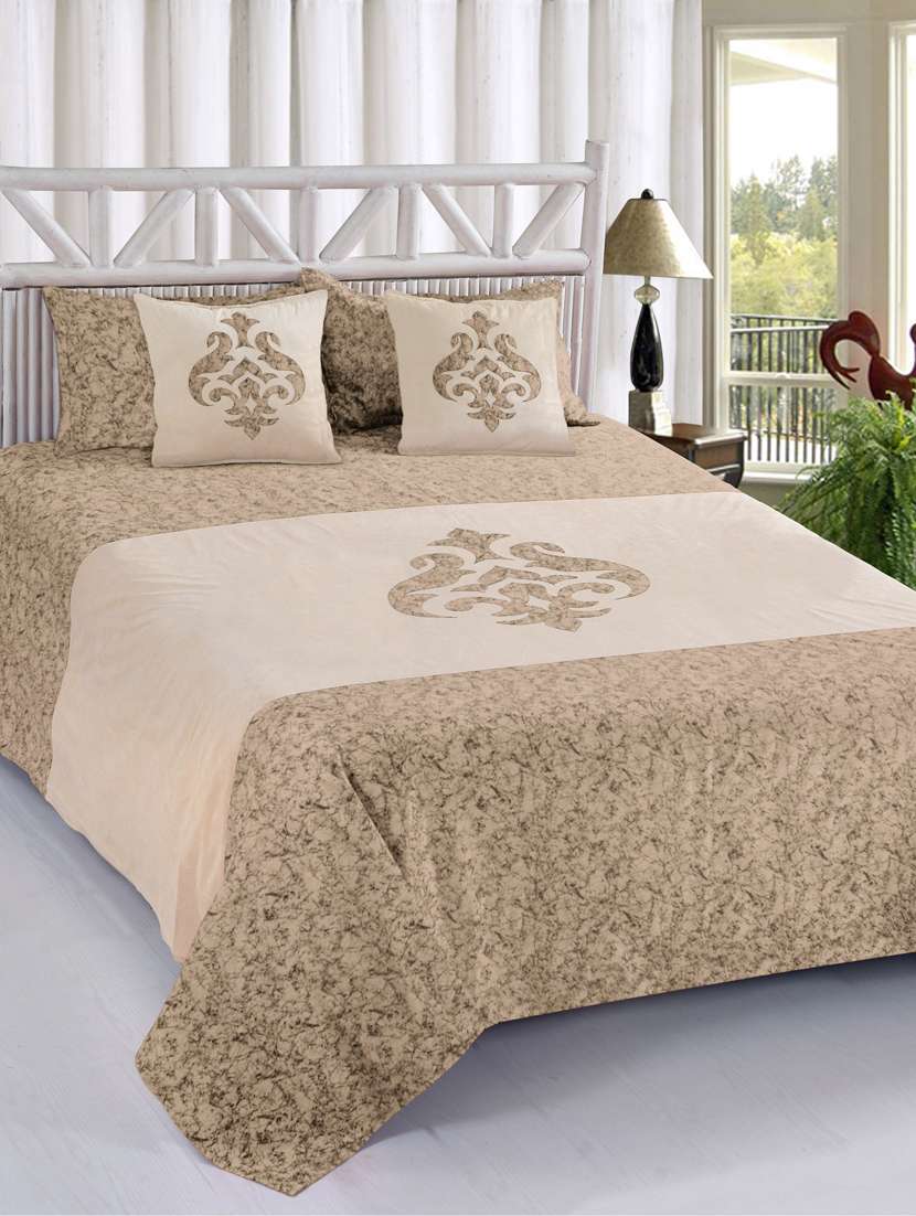 - » homesajjadouble bed sheet with 2 pillow covers and 2 cushions covers , ing size - 90'' x 100'' (damask gold beige)