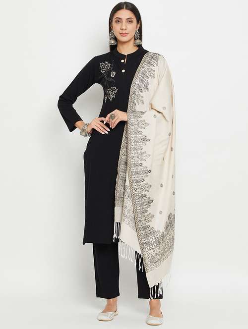 women self design long sleeve woollen suit set