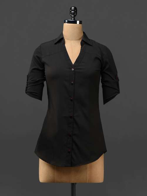 - » black button-up sleeves crepe shirt