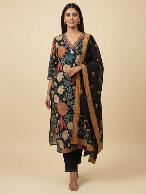 - Find gorgeous sets of ethnic wears in trending designs in black colors suitable for festive wear of occasions.
