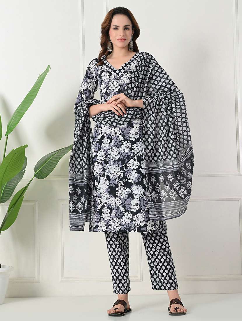 - Find gorgeous sets of ethnic wears in trending designs in black colors suitable for casual wear of occasions.