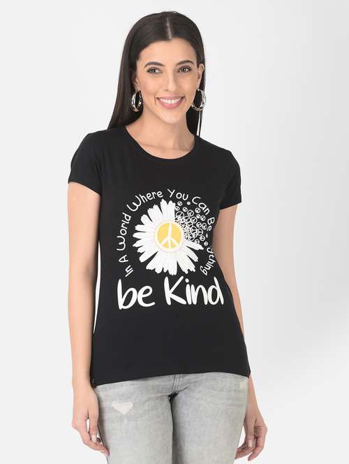 - » women front print round neck t-shirt