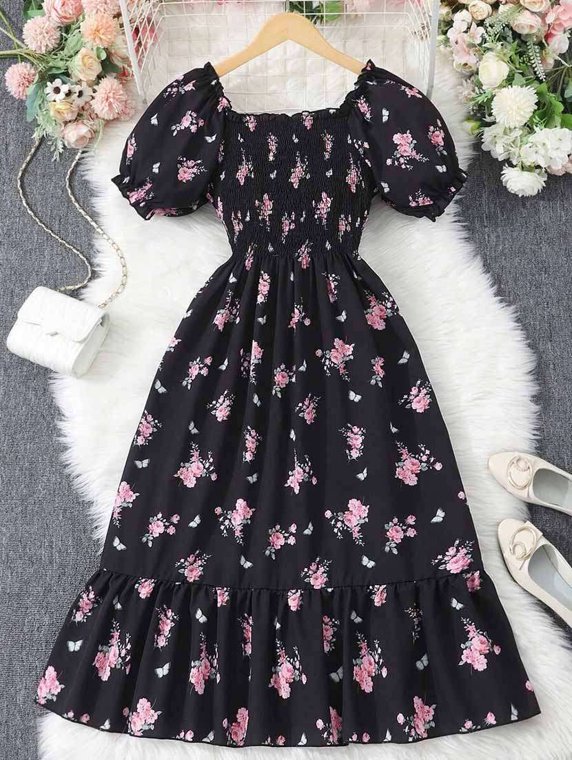 girls floral printed fit & flare tired dress