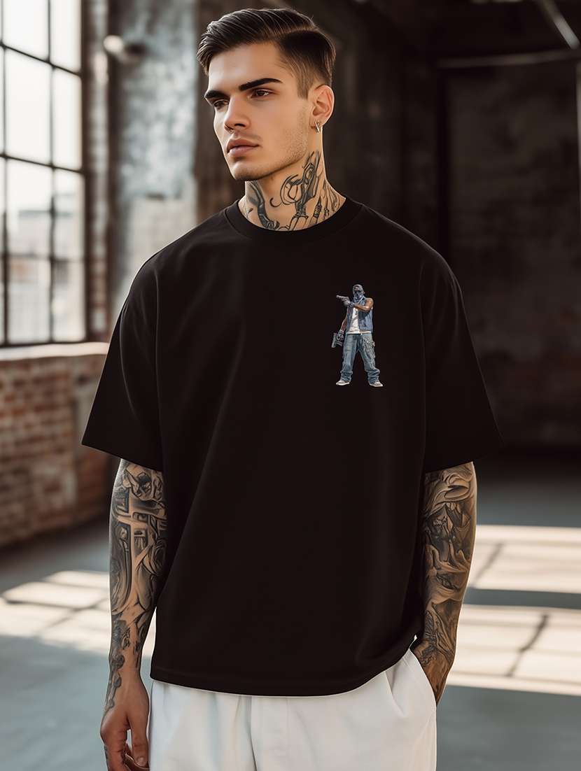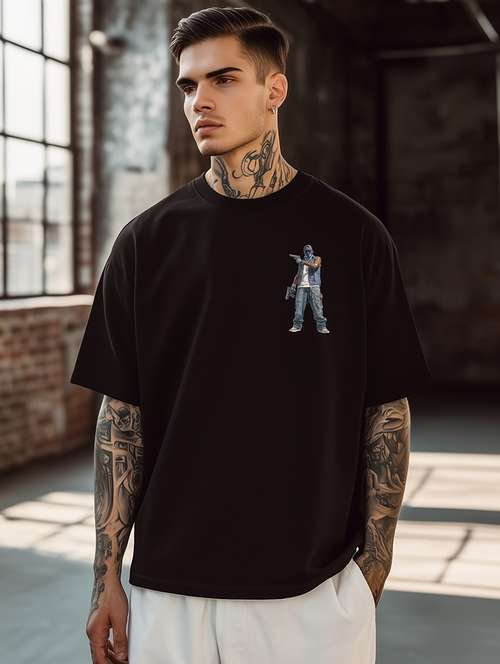 Create a cool and lasting impression in this Oversized t shirt also some times called loose fit t shirt having Round-Neck, Half sleeves and Printed graphics T-shirt for men from BUKKL. Beautifully Crafted with a cotton fabric and a trendy loose fitting, making it more comfortable to wear during all seasons. This stylish oversized t shirt is definitely a must-have in your wardrobe collection.