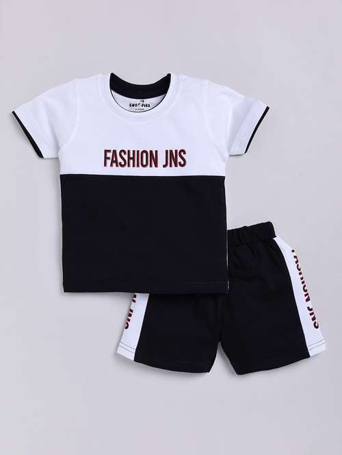 - » boys round neck color block shorts set