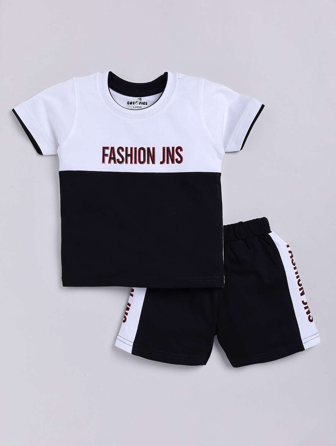 boys round neck color block shorts set