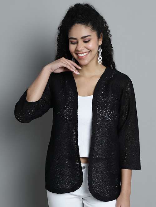 - » black self design cotton blend shrug