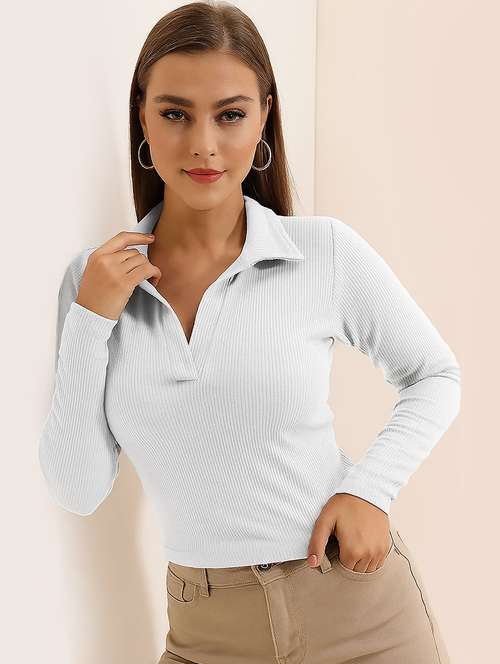 women solid polo neck long sleeve top - 22101501 -  Standard Image - 0 women solid polo neck long sleeve top - 22101501 -  Zoom Image - 0