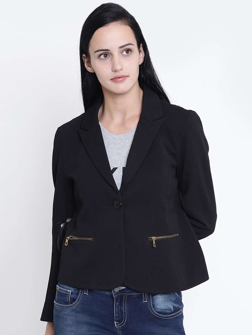 - » zipper detail solid blazer