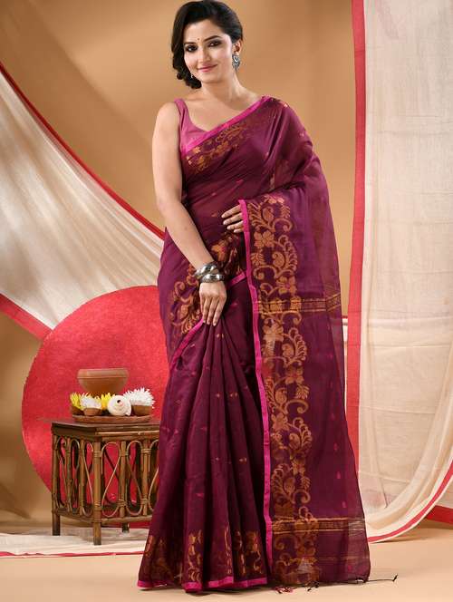 women self design handloom saree with blouse