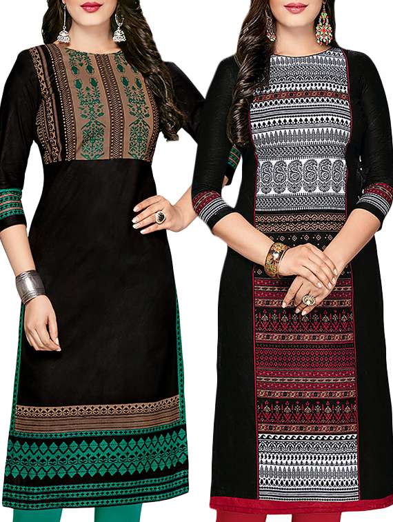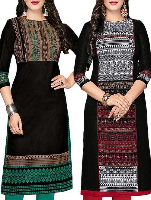 - » set of 2 black cotton unstitched kurta