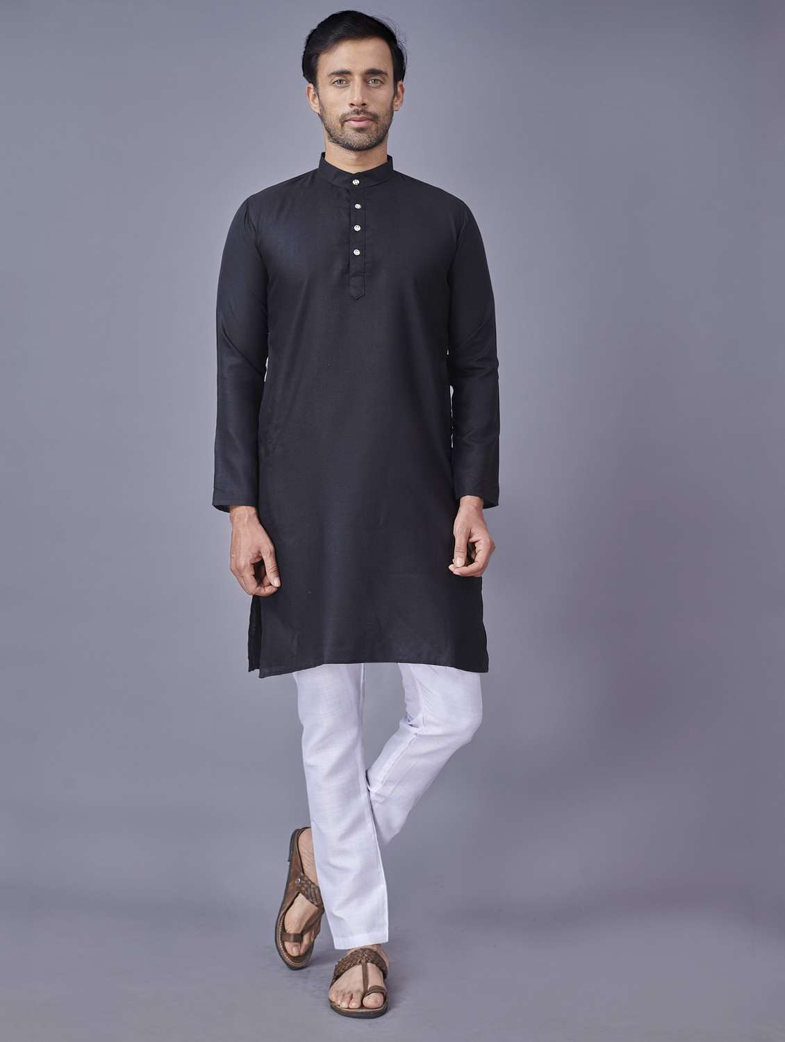 black solid kurta pyjama ethnic wear set