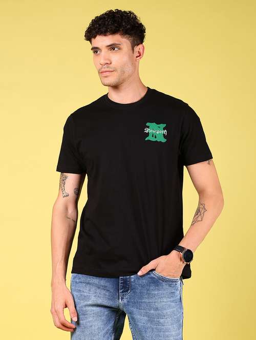 - » men front & back print round neck regular fit t-shirt