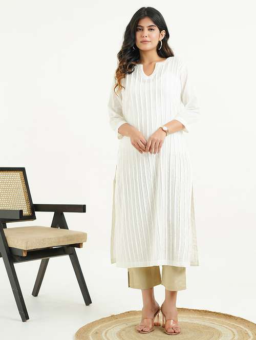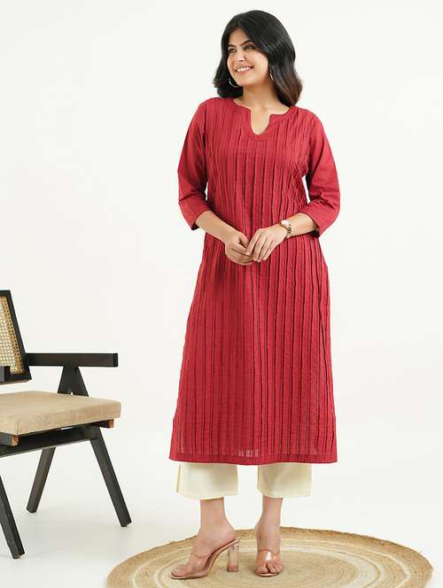 - Grab this beautiful kurta made up of cotton fabric featuring notch neck designs.