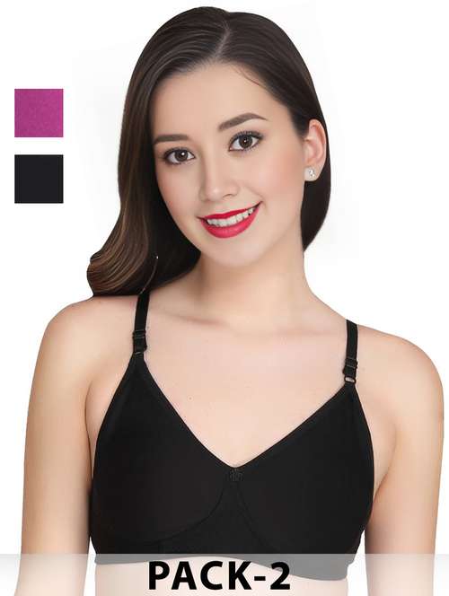 Liigne Women Everyday Non Padded Bra (Pack Of 2) - Made of Pure Cotton Full Coverage Non Wired Pushup Soft Cup for T-Shirt Saree Dress Sports Garment for Daily Use Everyday