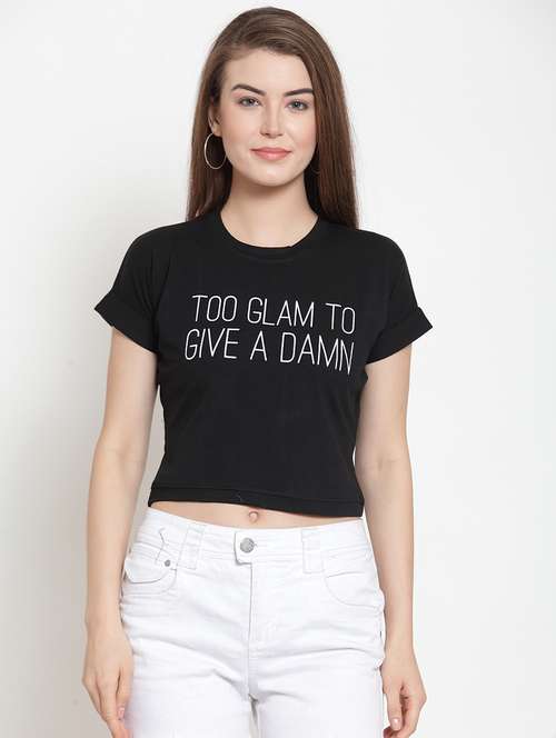 turn up sleeved quirky text crop top - 16310252 - Very Small Image - 1