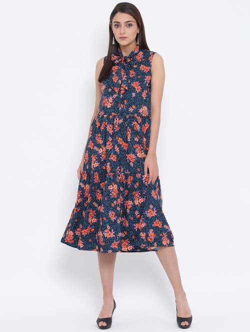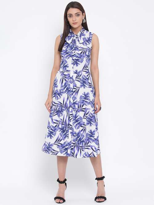 - Dress up in a soothing pattern and don this dress made of cotton material.