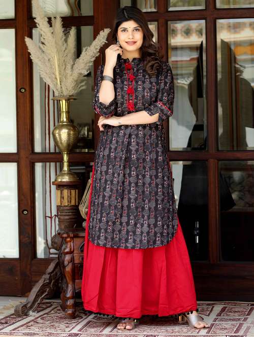 - Save your time mixing and matching various ethnic pieces and invest in beautiful kurta skirt set ethnic sets from MIRAVAN brands that give a well-fitted look in all styles.