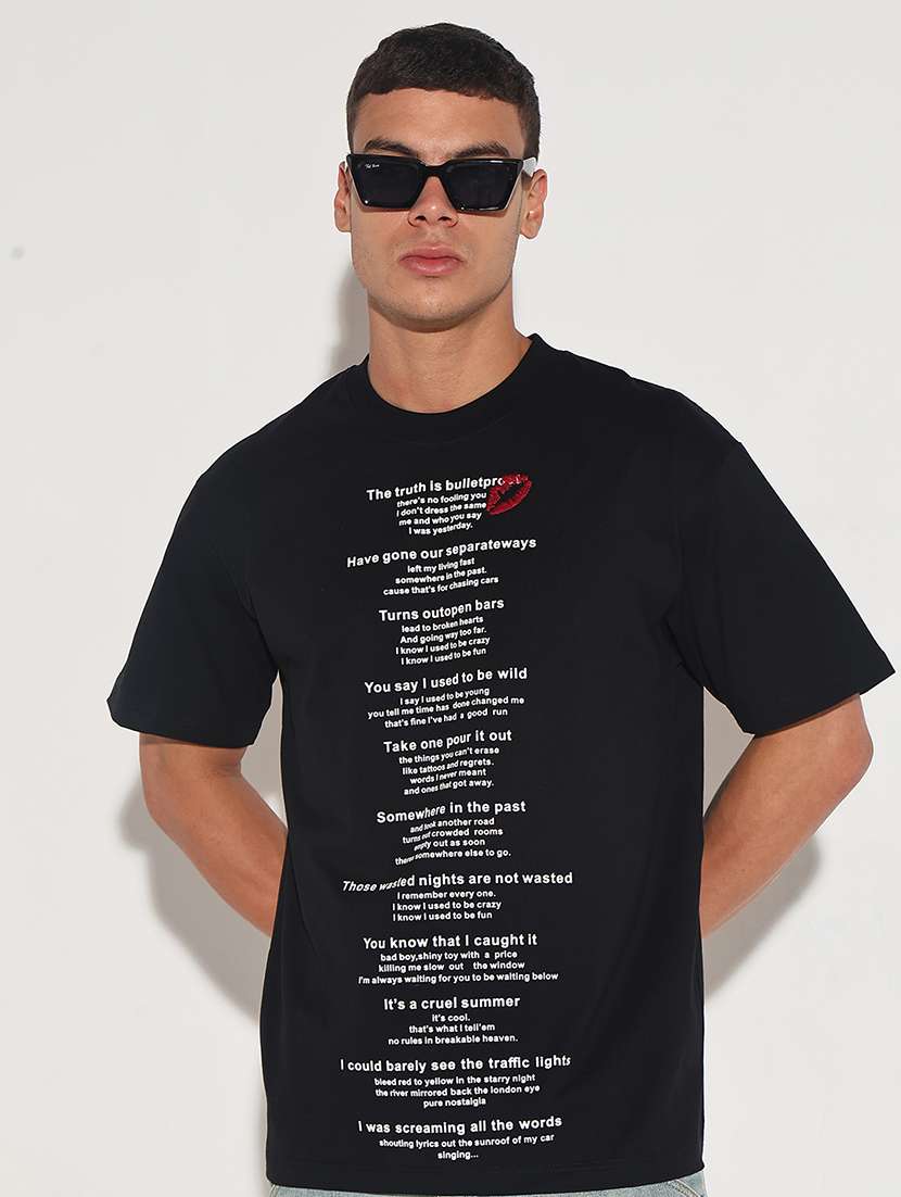 SHOWOFFFF Edition Men's Typography Black Round Neck Relaxed Fit T-Shirt