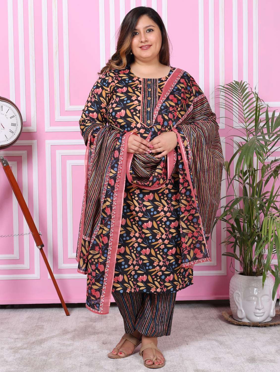 - » women floral printed three quarter sleeve kurta pant with dupatta set