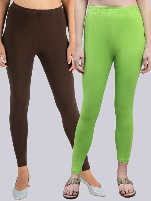 Upgrade your collection with these Solid Leggings combo ( Brown & Lime Green ) by Valles365. Pair them with a flowy tee and lace-up sandals for a super chic look.